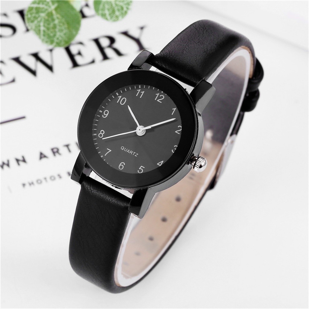 Tmgone New Fashion Women Leather College Style Black Case Fine Strap Band Quartz Analog Black One Size Buy 2 Get 1 Free Walmart Com